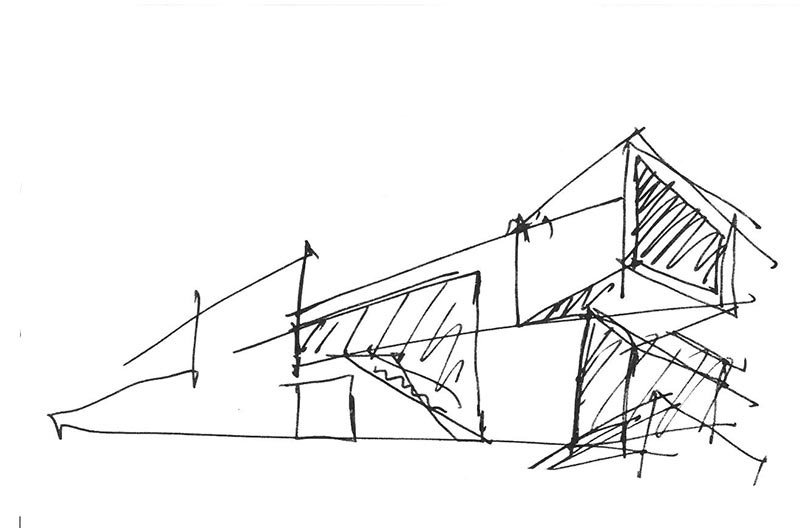 Das Gebäude ist in Verlängerung des Bestandes an die Straßenfluchlinie angebaut. Der Erker wendet sich dem Ort zu und definiert dadurch einen klaren Eingangs- und Ankunftsbereich.